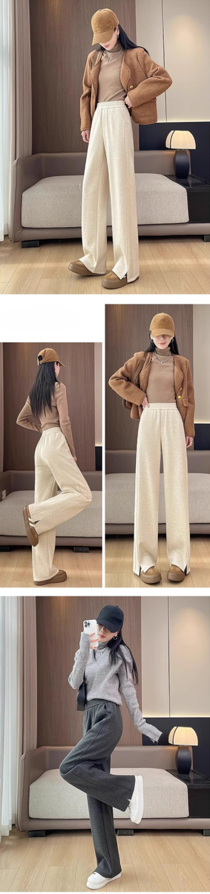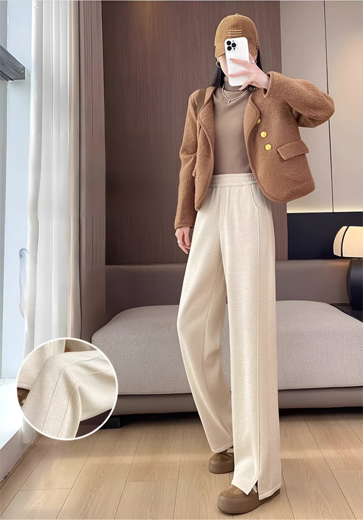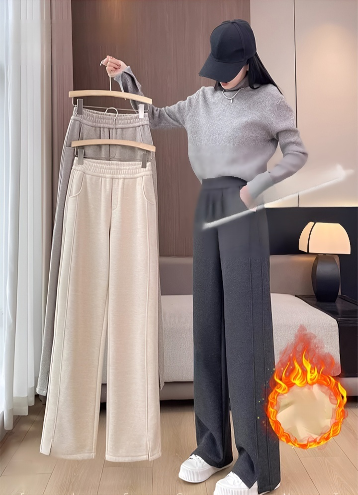 가을 겨울용 뒤 기모 하이 웨스트 레이디스 팬츠